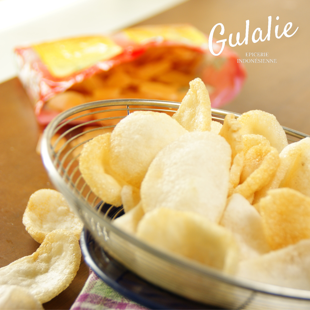 Une gamme de collations comme les kerupuks et chips.